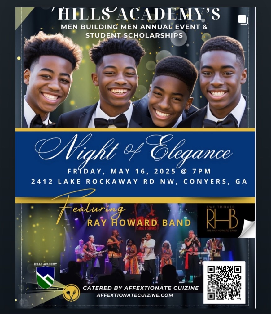 Join us in supporting Hills Academy's Men Building Men Annual Event & Student Scholarships at the Night of Elegance on Friday, May 16, 2025, at 7 PM in Conyers, GA!